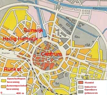 * Zie kaart Hasselt. Rond de stadskern tref je wijken aan met (bruin) met ...... bebouwing.