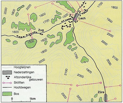 1 1500 1600 1700 5 afval après-ski bodemerosie cultuur Frankrijk hotels kabelbanen landbouw langlaufen lawine Oostenrijk rodelen skiën sneeuw vegetatie verkeersdrukte wintertoerisme zomertoerisme Zwitserland [?] skilift en het gehucht Zürs, op een hoogte van