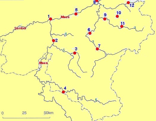 ZIE BOVENSTAANDE KAART EN ATLAS KAART VAN BELGIË. Zie blauwe getallen. Geef de naam van de stad nr.12.